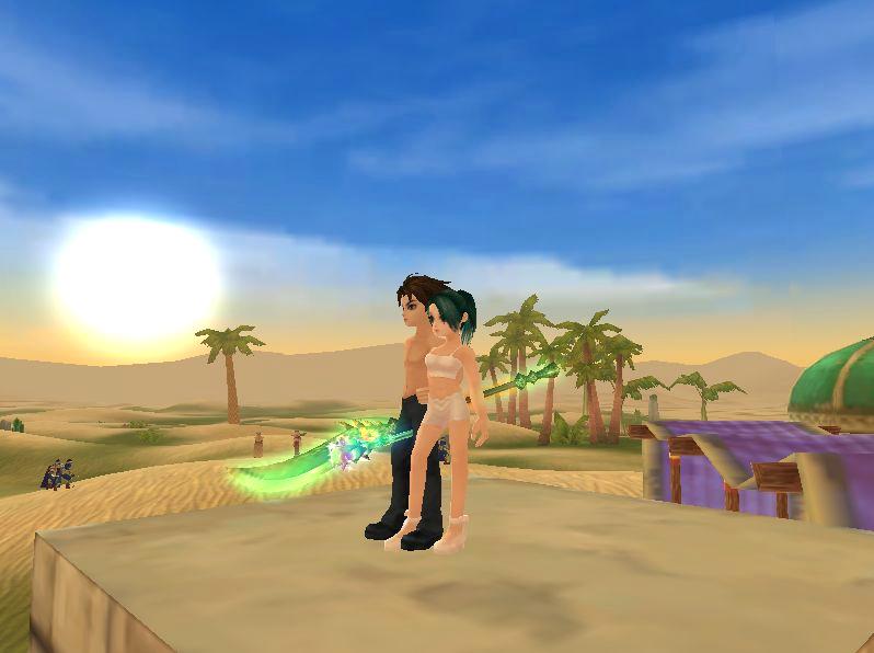 ウルフィーとモンキチ300ずつという・・・地味にメンドーなクエでした(A;´・ω・) そして初・砂漠です!! テレポした瞬間驚きました。街中まで砂漠なんですね ![]() お散歩してみました。 旦那の鎧も脱がせてみました(*`艸´) 外にチラホラと・・・休憩所?みたいなもの発見。 お気づきでしょうか?