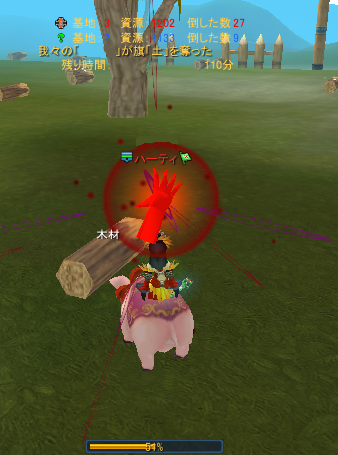 戦闘班と採取班に分かれて挑みます。 と、その前に領土戦に向かうにあたり、前もって聞いていたのですが・・・ 超・落ちます! なかなかログインできず、開始時間が迫ってきてドキドキ((´д`υ)) 入れた瞬間、自分が赤ネになっててビビリましたw 私は採取班ですので、ひたすら の作業を繰り返しですw採取品を集めて護衛兵?等を呼ぶ為に奔走です。 SS取り忘れたんですが、採取場に木のアーチみたいなのがあるんです。 エフェクトを最大にしていれば、その罠にかからずにすんだのですが・・・・PC固まるので私は最低表示でした。 そして、何も考えずアーチをくぐると・・・ そこは戦場でしたΣ(; ゚Д゚) 倒されたら相手に無駄にポイント与えてしまうので必死に逃走ww 低レベのみなさん、アーチに注意です!! 高レベの方たちが旗を奪ったり奪い返し、リードしている時に資源10000達成 ![]() (* ‘∇‘)/°・:*【祝】*:・°\(‘∇‘ *) 勝利です!!!みんなで天空の領土へ行きました。